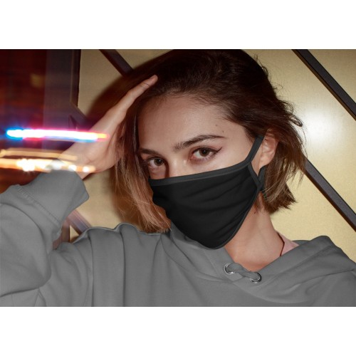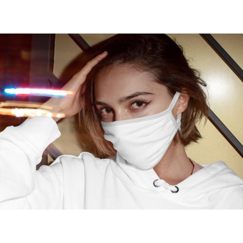 Mascara de algodão, modelo anatômico, camada dupla, com alças para prender nas orelhas